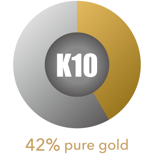 黄金の輝きは、時代や文化を超えて人々を魅了し続けてきました。金の純度は24分率で示され、K24(24金)は最も純粋なゴールド、K18(18金)は75%の純金を含む素材として知られています。純度が高いほど価値も高まりますが、非常に柔らかい性質を持つため、ジュエリーには他の金属を加え、強度と耐久性を高めるのが一般的です。特にヨーロッパでは、繊細なデザインと日常使いに適したK14(14金)が好まれ、K10(10金)はエレガンスを保ちながらも軽やかさとコストパフォーマンスを両立させた選択肢として親しまれています。