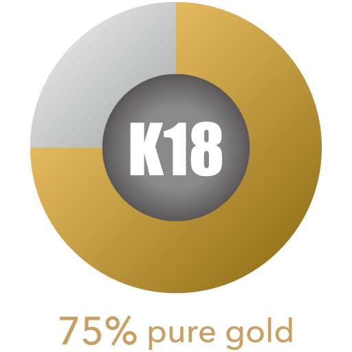 金含有率75%。耐久性が高く、変色しにくい上に金本来の美しさも楽しめるジュエリーに最も的した素材。金属アレルギーも比較的起きにくく長く愛用できます。